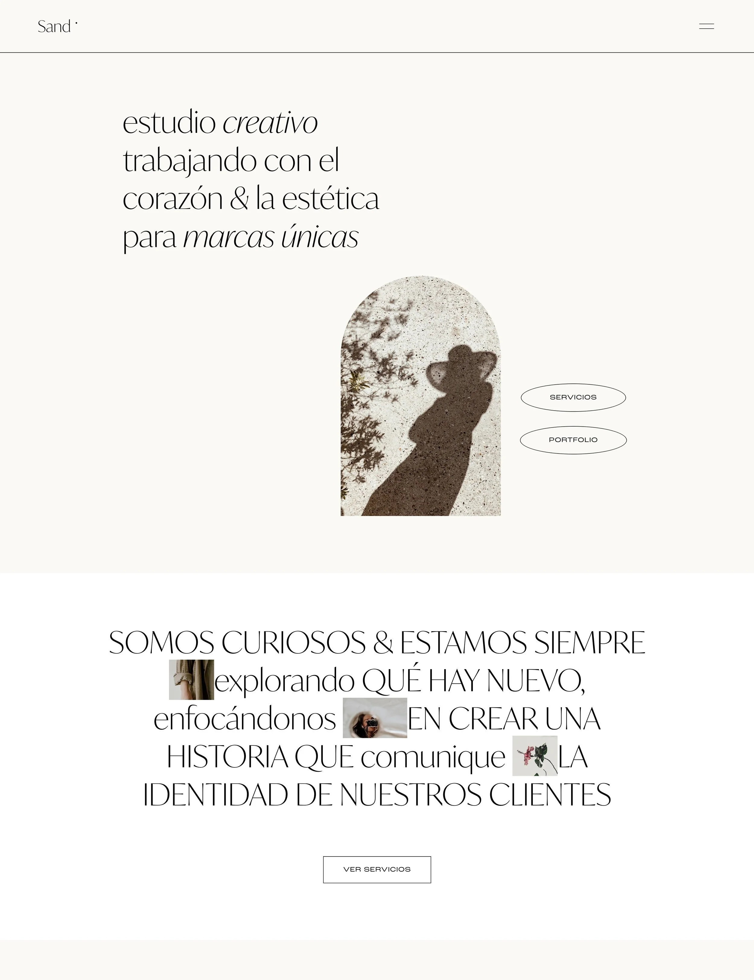 Sand es un template con un estilo clásico y bohemio, sin dejar de ser fácil adaptable a cualquier marca. Es el template ideal para estudios de diseño y marcas personales, especialmente para artistas como fotógrafos, videografos o pintores.